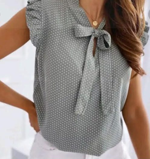 Be the first to review “Gray Polka Dot Tie up blouse”