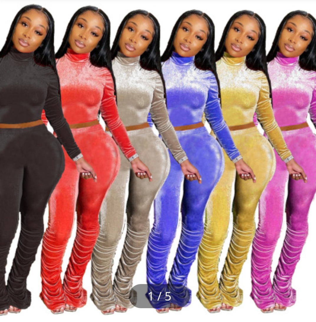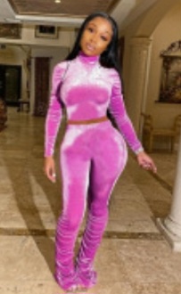 Solid Color Velvet Fabric Pleated Top and Pants Set